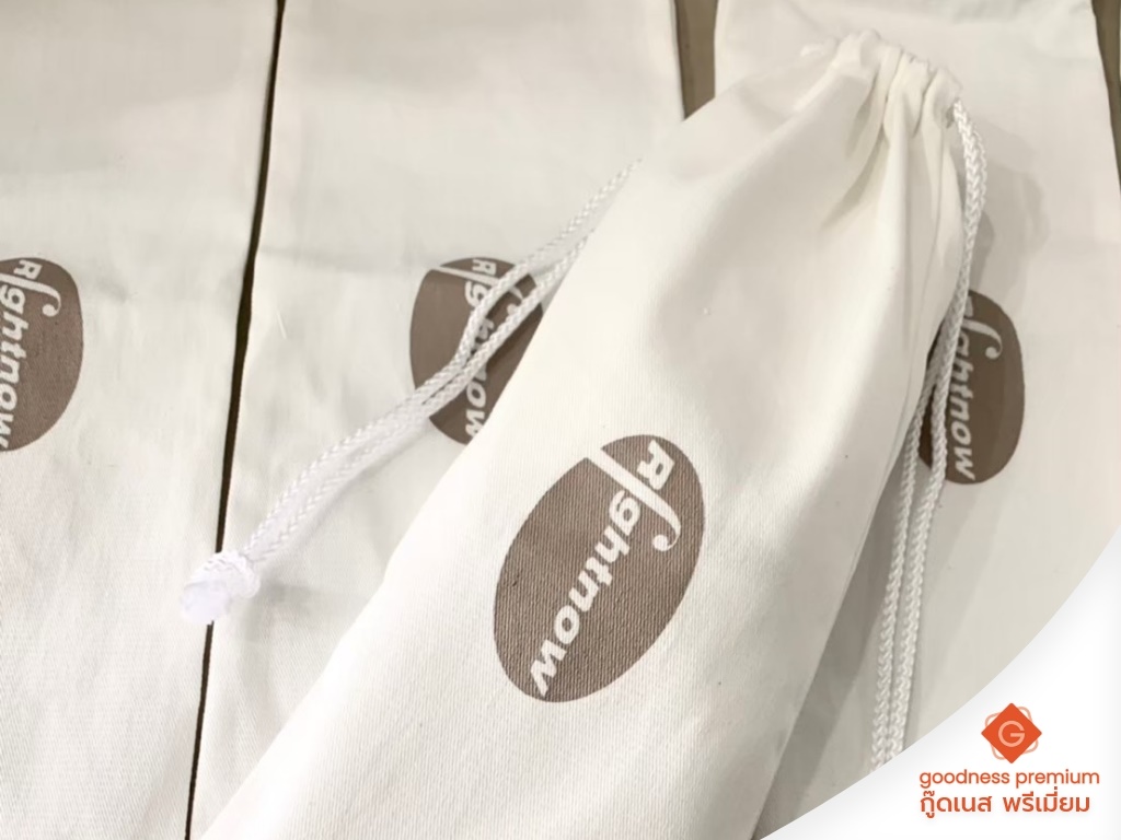 ถุงผ้าดิบหูรูด+สกรีนโลโก้