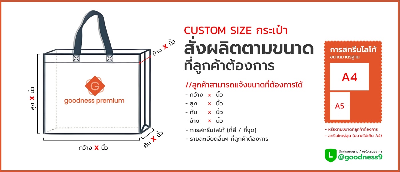 กู๊ดเนส พรีเมี่ยม (Goodness Premium) โรงงานผลิต กระเป๋าหูรูด (Drawstring Bag)